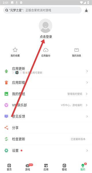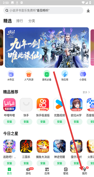 1、在進(jìn)入到聯(lián)想應(yīng)用商店首頁(yè)中,可以點(diǎn)擊下方我的按鈕,進(jìn)入我的主頁(yè)。