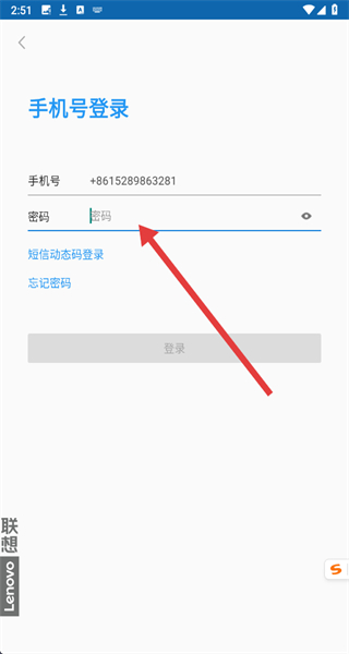 4、在進(jìn)入到手機(jī)號(hào)登錄頁(yè)面中,點(diǎn)擊填寫登錄密碼后,點(diǎn)擊登錄按鈕即可完成登錄。