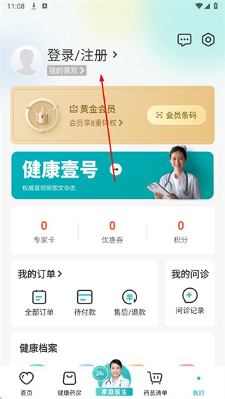 1、打開111醫(yī)藥館APP,點擊右下角我的選項,進(jìn)入個人中心頁面。
