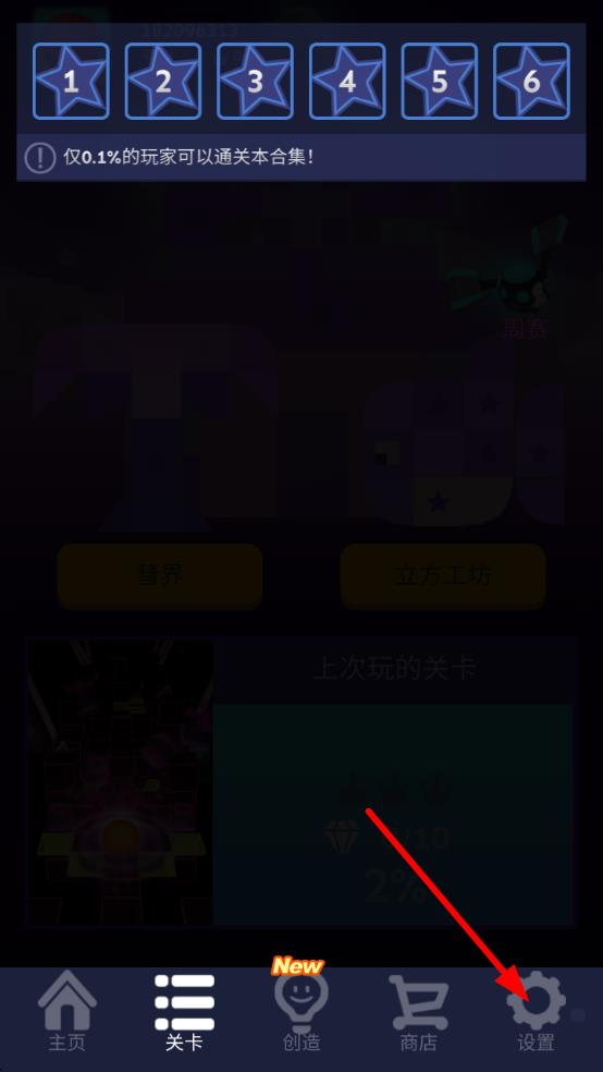 1、打開滾動的天空游戲,點(diǎn)擊主界面右下角設(shè)置圖標(biāo)進(jìn)入設(shè)置。
