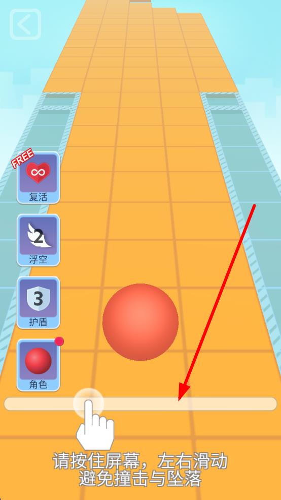 3、進入游戲后,按住屏幕左右滑動,操控滾動的球躲避障礙物和陷阱,抵達終點。