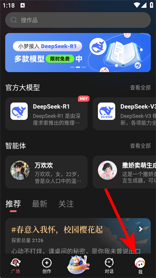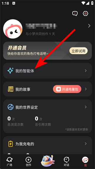 2、在個(gè)人功能頁(yè)面,點(diǎn)擊我的智能體,進(jìn)入智能體管理頁(yè)面。