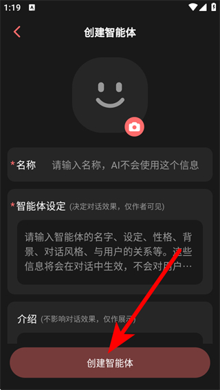 4、在頁(yè)面填寫(xiě)信息后,點(diǎn)擊創(chuàng)建智能體,完成智能體創(chuàng)建操作。