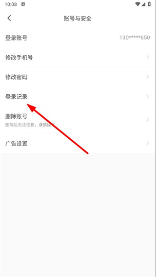 3、在賬號(hào)與安全頁(yè)面點(diǎn)擊登錄記錄選項(xiàng),進(jìn)入登錄設(shè)備查看頁(yè)面。