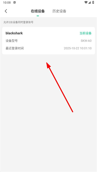 4、在登錄設(shè)備頁(yè)面可查看在線設(shè)備和歷史設(shè)備信息,包括設(shè)備型號(hào)、最近登錄時(shí)間等。