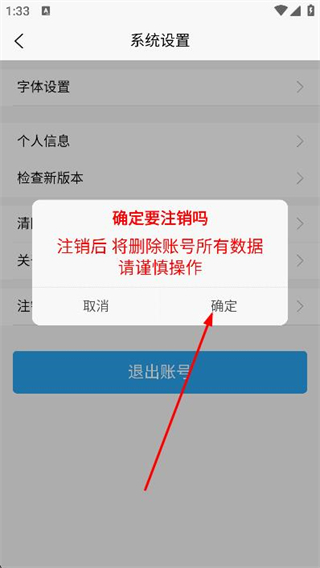 4、在彈出的提示框中,點(diǎn)擊確定即可注銷賬號(hào)。