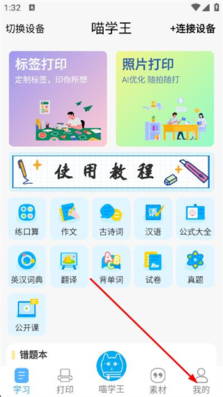 喵學(xué)王app是深圳市鎂光晶體技術(shù)有限公司打造的學(xué)生錯(cuò)題打印機(jī)軟件。智能拍照識(shí)別功能,一鍵輕松識(shí)別照片中的題目,精準(zhǔn)搜題。自由練習(xí)板塊,多種特色的學(xué)習(xí)板塊,海量習(xí)題等你來練習(xí)。全面的習(xí)題,各個(gè)年齡段的學(xué)生都能在這里獲得詳細(xì)的刷題解析幫助。通過智能整理錯(cuò)題的方式打造錯(cuò)題試卷,快速打印,進(jìn)行習(xí)題練習(xí)。