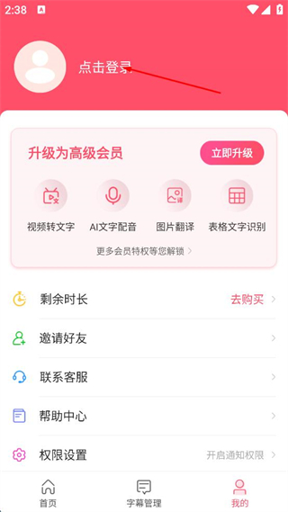 1、打開(kāi)字幕提取器APP,點(diǎn)擊底部“我的”選項(xiàng)。