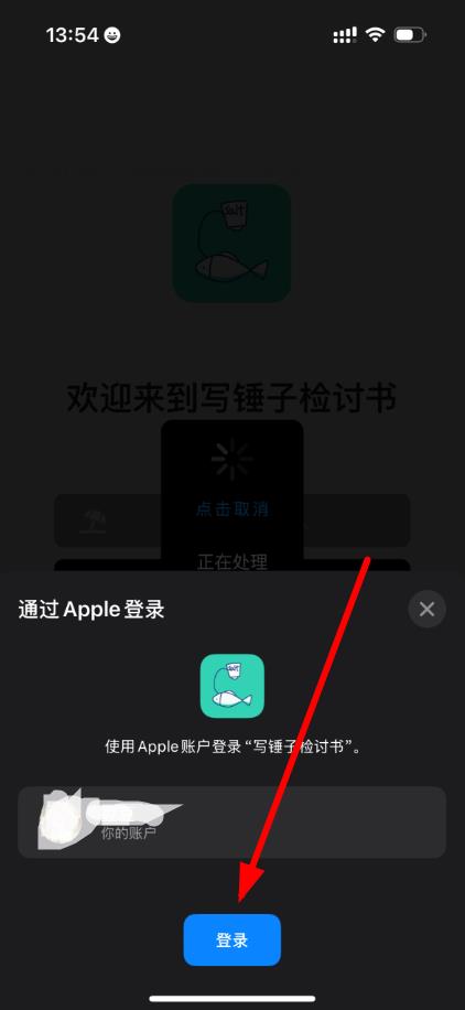 2、點擊界面中的Sign in with Apple按鈕,進入Apple登錄流程,在彈出的通過Apple登錄窗口中,點擊登錄按鈕。