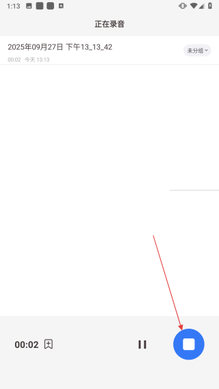 2、錄制結(jié)束后,點(diǎn)擊正在錄音界面右下角的藍(lán)色方形停止按鈕,結(jié)束錄音操作。