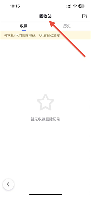 4、進入回收站界面,即可查看7天內(nèi)刪除的收藏和歷史內(nèi)容。