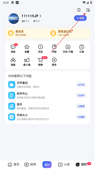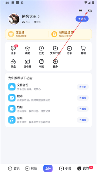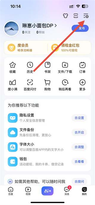 1、打開百度APP,點擊右上角的三條橫線菜單按鈕。