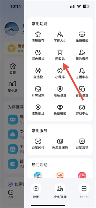 3、在彈出的選項列表中,找到回收站選項并點擊。