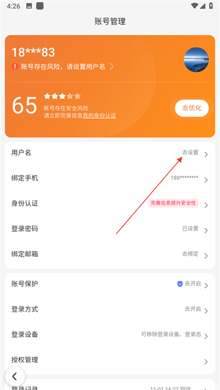 4、點擊用戶名右側(cè)的去設(shè)置選項。