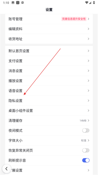 3、在設(shè)置頁面點擊隱私設(shè)置選項,進入隱私設(shè)置頁面。