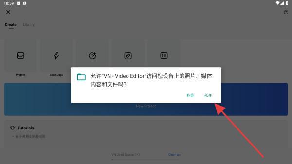 2、彈出權(quán)限請(qǐng)求時(shí),點(diǎn)擊允許,授予VN訪問(wèn)設(shè)備照片、媒體的權(quán)限。