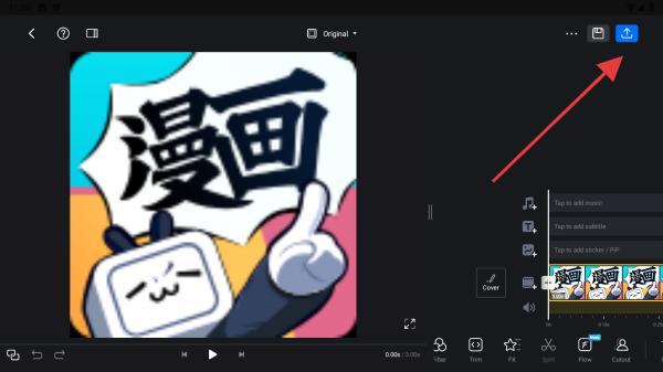 4、將素材導(dǎo)入剪輯軌道,根據(jù)需求進(jìn)行剪輯,剪輯后點(diǎn)擊右上角導(dǎo)出↑的圖標(biāo)即可完成。