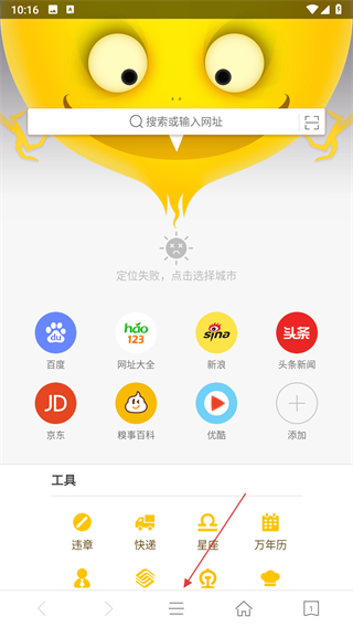 1、打開(kāi)vc瀏覽器,點(diǎn)擊底部的三條橫線菜單按鈕。