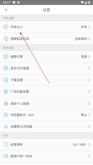 3、進(jìn)入設(shè)置頁(yè)面后,點(diǎn)擊字體大小選項(xiàng)。