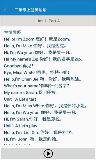 1、電子課本,擁有三年級(jí)的英語(yǔ)課文內(nèi)容,直接查看課文信息。