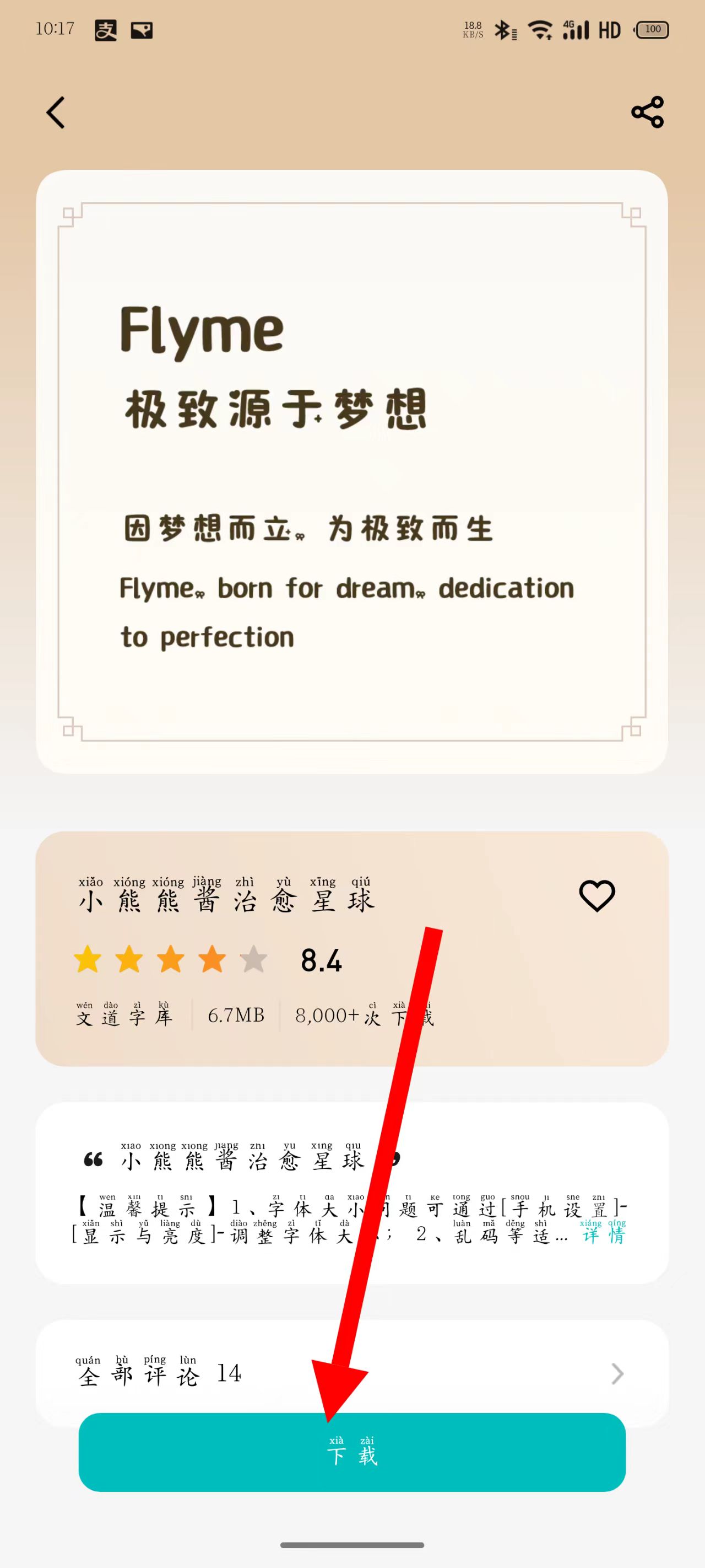 4、在字體詳情頁(yè)面,點(diǎn)擊“下載”按鈕,下載完成后應(yīng)用該字體,即可完成字體風(fēng)格設(shè)置。
