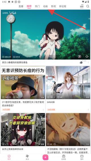 1、打開(kāi)嗶哩嗶哩app,通過(guò)頂部導(dǎo)航欄找到并點(diǎn)擊動(dòng)畫(huà)的標(biāo)簽。