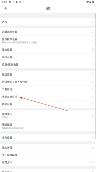 3、進(jìn)入設(shè)置的界面內(nèi),向下拉動(dòng)點(diǎn)擊清理存儲(chǔ)空間的按鈕。