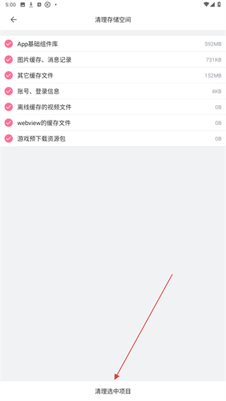 4、勾選需要清理的內(nèi)容后,點(diǎn)擊最下方清理選中項(xiàng)目即可。