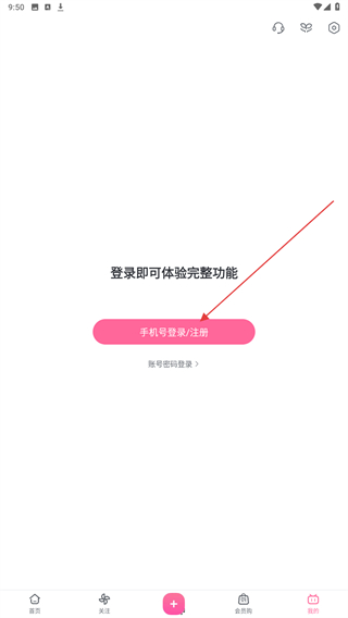 2、進(jìn)入我的頁(yè)面內(nèi),點(diǎn)擊手機(jī)號(hào)登錄/注冊(cè)的按鈕。