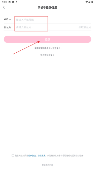 3、在該頁(yè)面內(nèi)輸入手機(jī)號(hào)、驗(yàn)證碼后,再點(diǎn)擊登錄。