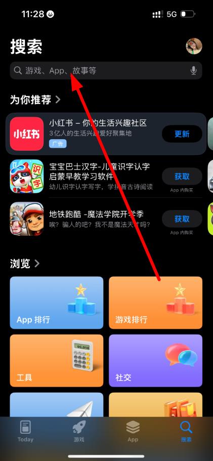 1、打開(kāi)app store應(yīng)用進(jìn)入主界面,點(diǎn)擊底部導(dǎo)航欄中的搜索圖標(biāo)進(jìn)入搜索頁(yè)面。