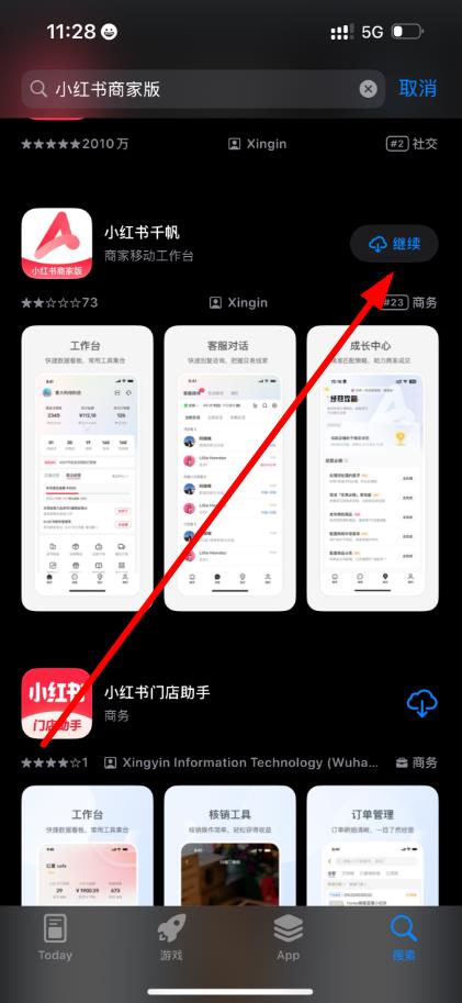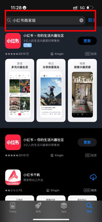 3、輸入完成后在鍵盤(pán)上點(diǎn)擊搜索按鈕,app store會(huì)顯示相關(guān)的搜索結(jié)果。