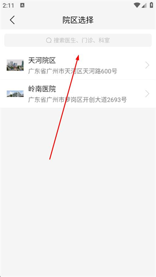 3、在院區(qū)選擇頁面,選擇要就診的院區(qū)。