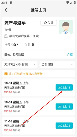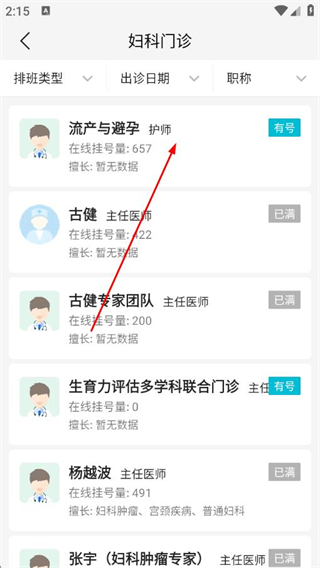 5、在婦科門診頁面,選擇有號的醫(yī)生。
