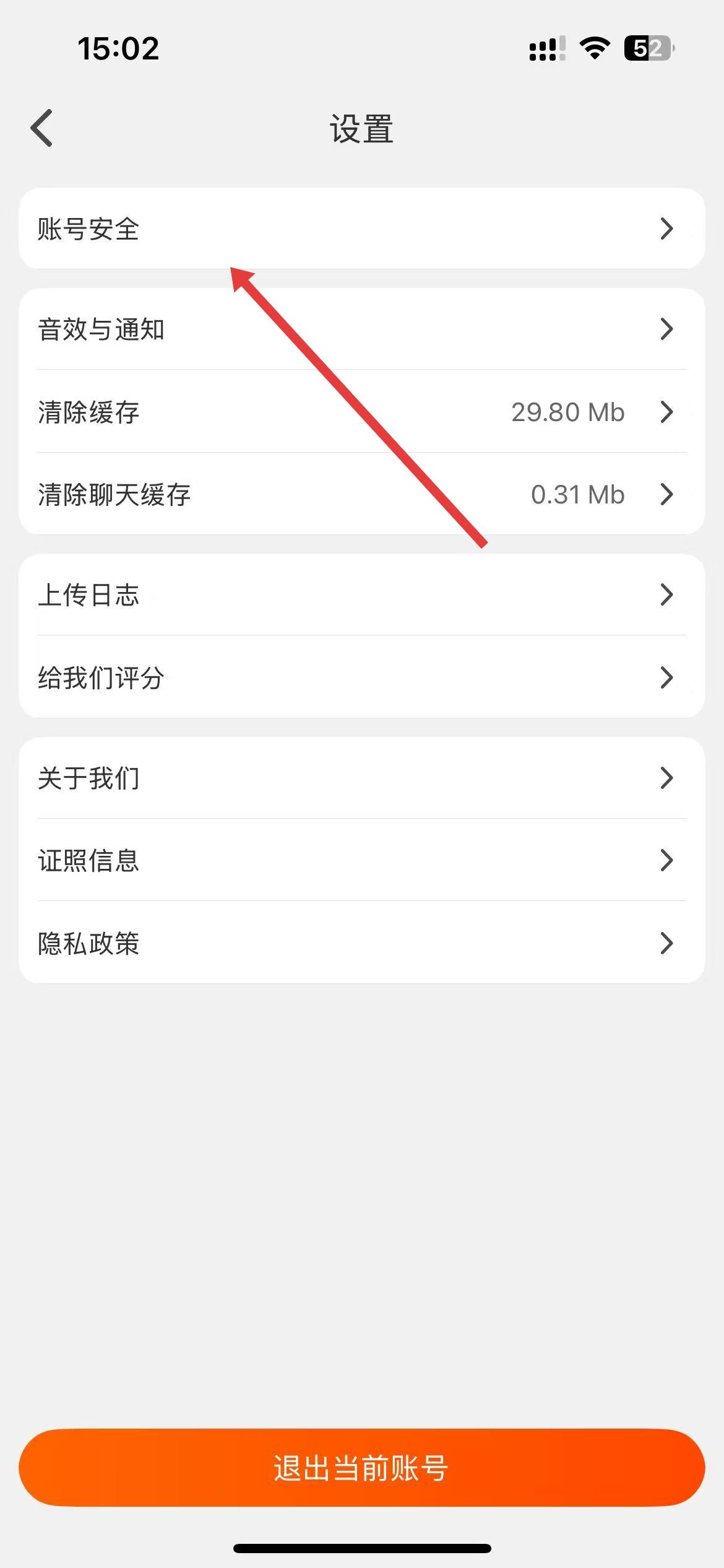 2、在設(shè)置界面里找到并點擊賬號安全選項,進入賬號安全界面。