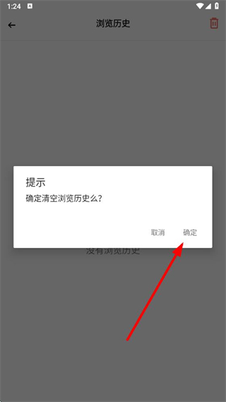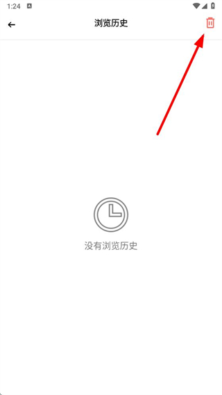 3、在瀏覽歷史界面,點(diǎn)擊右上角垃圾桶圖標(biāo)。