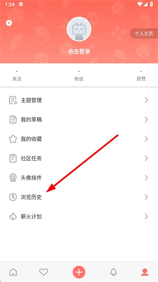 2、在個人中心界面,點(diǎn)擊瀏覽歷史,進(jìn)入瀏覽歷史界面。