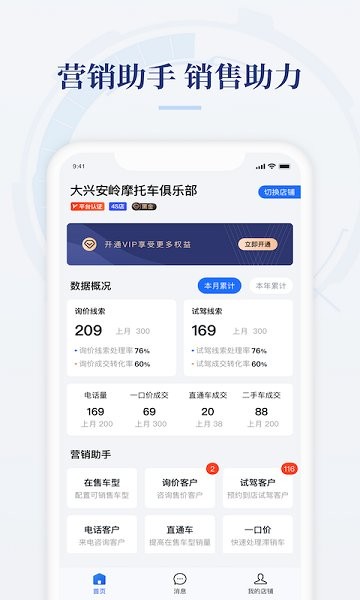 摩托范商家版(哈羅摩托商家版),為萬家摩托經(jīng)銷商提供在線售車、摩托車報價、庫存管理、線索管理、人員管理、在售車型管理、店鋪運(yùn)營、批發(fā)、數(shù)據(jù)報表等綜合性服務(wù)。是摩托車經(jīng)銷商拓展銷售渠道和摩托車銷售的好幫手。