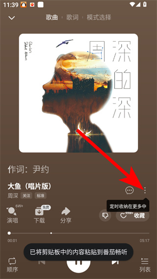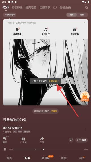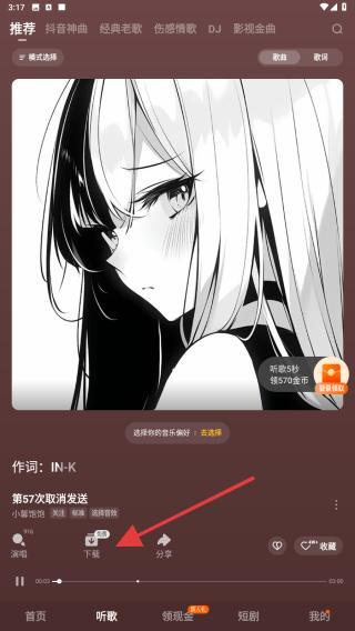 2、進(jìn)入到聽歌的頁面內(nèi),點擊進(jìn)度條上下載的功能按鈕。