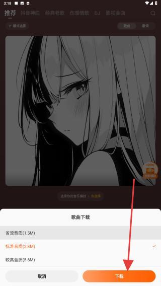 3、點擊后,彈出歌曲下載的按鈕,選擇音質(zhì)后再點擊下載。