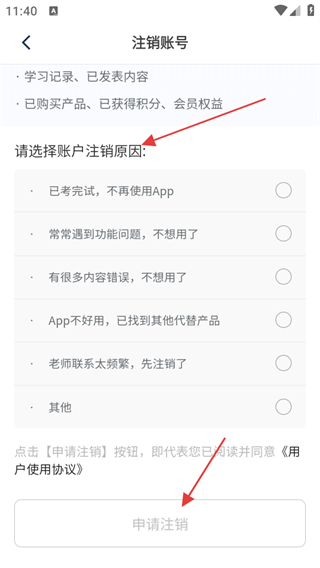 4、在注銷賬號(hào)頁(yè)面,選擇賬戶注銷原因,點(diǎn)擊申請(qǐng)注銷。