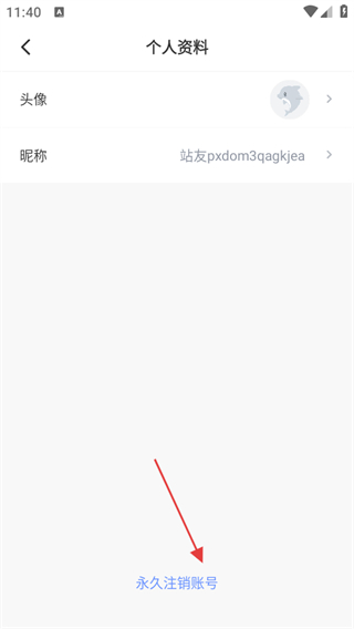 3、在個(gè)人資料頁(yè)面下方,點(diǎn)擊永久注銷賬號(hào)選項(xiàng)。