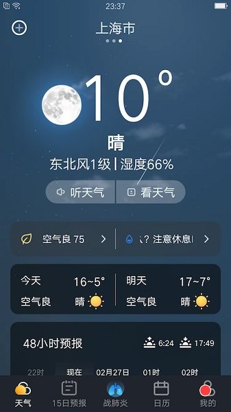2、實時掌握48小時天氣變化,今日溫差提前預(yù)防。