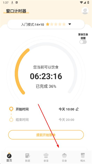 1、打開輕斷食辟谷APP,點擊底部導航欄中的飲食選項。