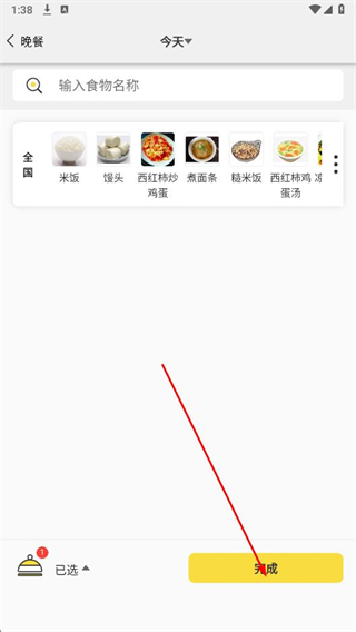 5、點擊頁面右下角的完成按鈕,即可完成晚餐食譜記錄。