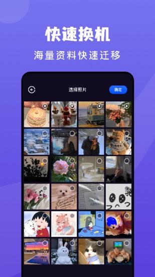 1、速度非常快,為您節(jié)約大量時間。傳輸不需要流量,兩個手機互掃即可輕松傳輸;