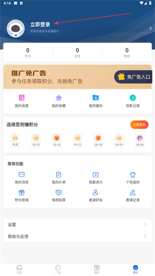 2、進入我的頁面內(nèi),用戶需點擊立即登錄的功能按鈕。