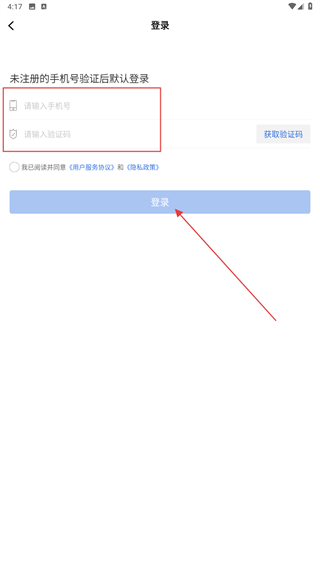 3、在登錄的頁面內(nèi),輸入手機號、驗證碼,再點擊登錄的按鈕。