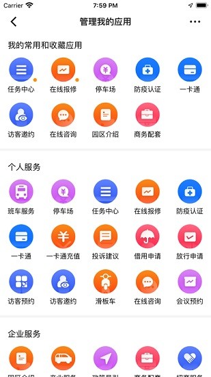 金隅智造工場應(yīng)用為園區(qū)企業(yè)提供諸多業(yè)務(wù):企業(yè)認(rèn)證、智能通行、班車服務(wù)、滑板車、 訪客預(yù)約、訪客邀約、在線報修、在線咨詢、物品借用、物品放行、一卡通、園區(qū)圈子等。