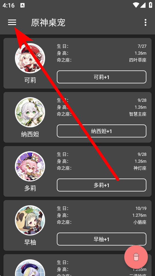 1、打開原神桌寵應(yīng)用,點擊左上角的三條橫線菜單按鈕。